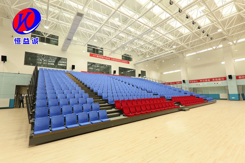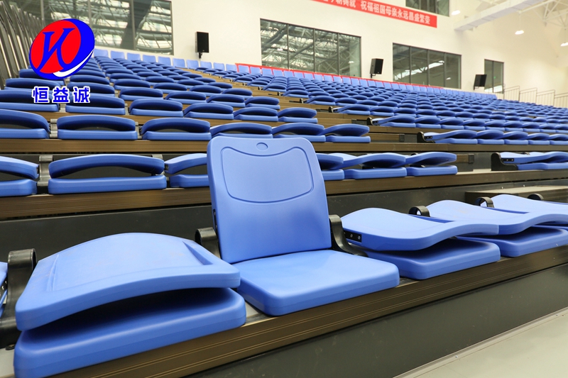 伸缩座椅通常采用人体工程学设计,符合人体坐姿曲线,有良好的支撑性和舒适度,能让观众在长时间观赛中保持舒适。同时,合理的看台坡度和排距设计,配合伸缩功能,可确保不同位置的观众都有较好的视线,减少视线遮挡,提升观赛体验。