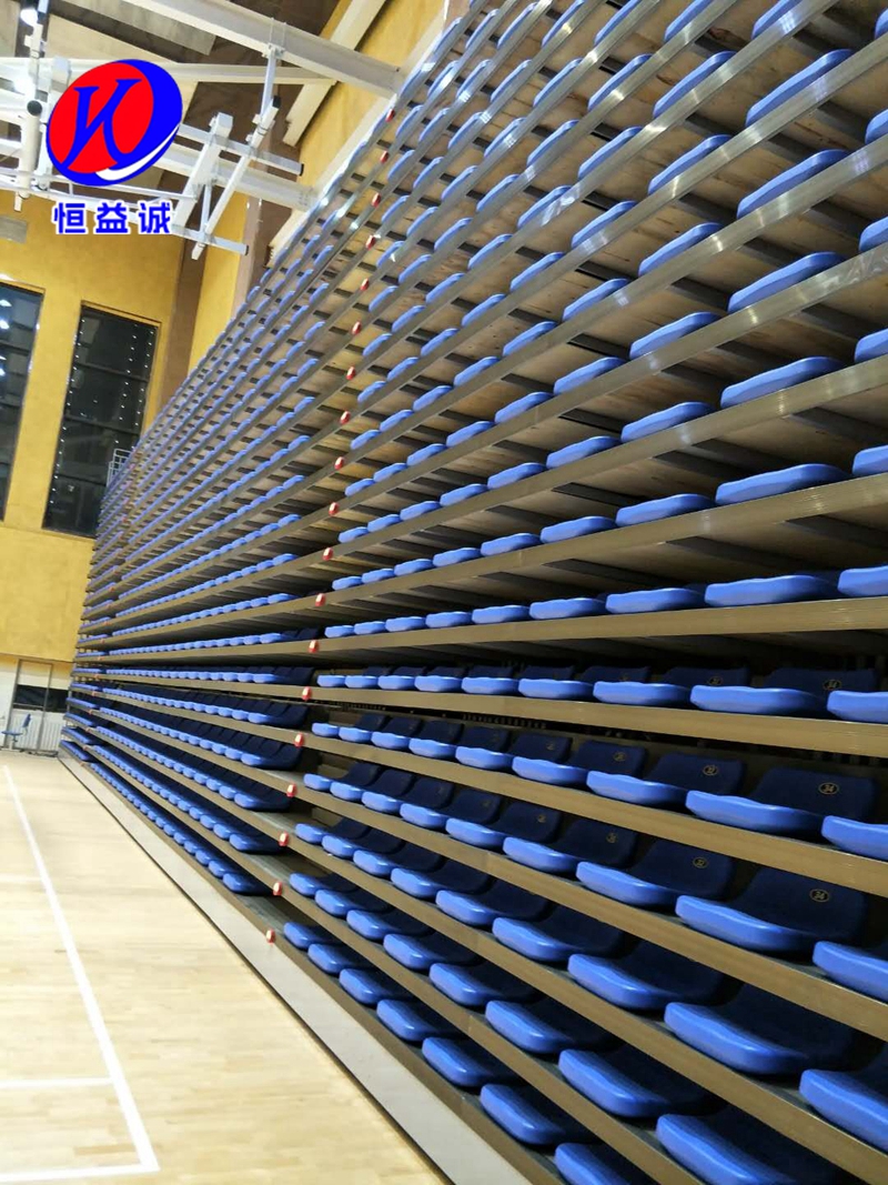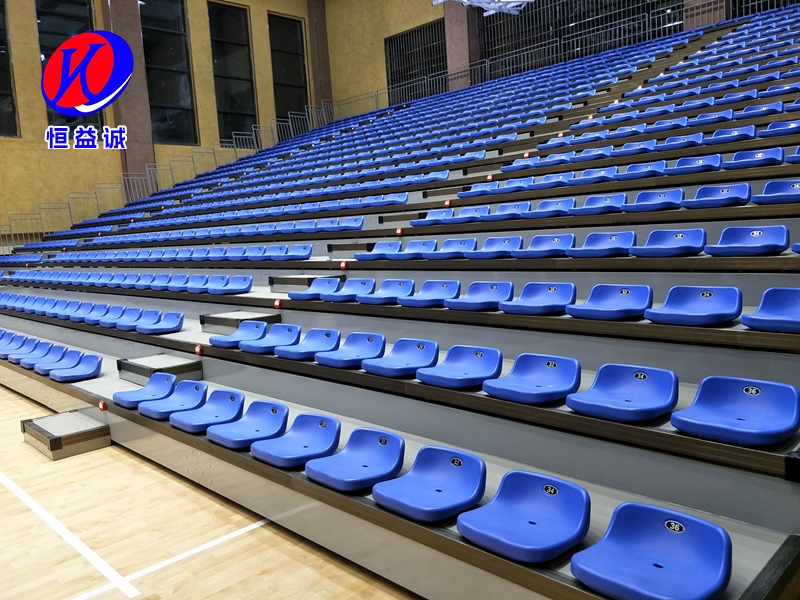 伸缩座椅通常采用人体工程学设计,符合人体坐姿曲线,有良好的支撑性和舒适度,能让观众在长时间观赛中保持舒适。同时,合理的看台坡度和排距设计,配合伸缩功能,可确保不同位置的观众都有较好的视线,减少视线遮挡,提升观赛体验。