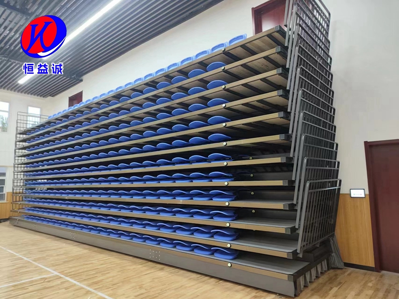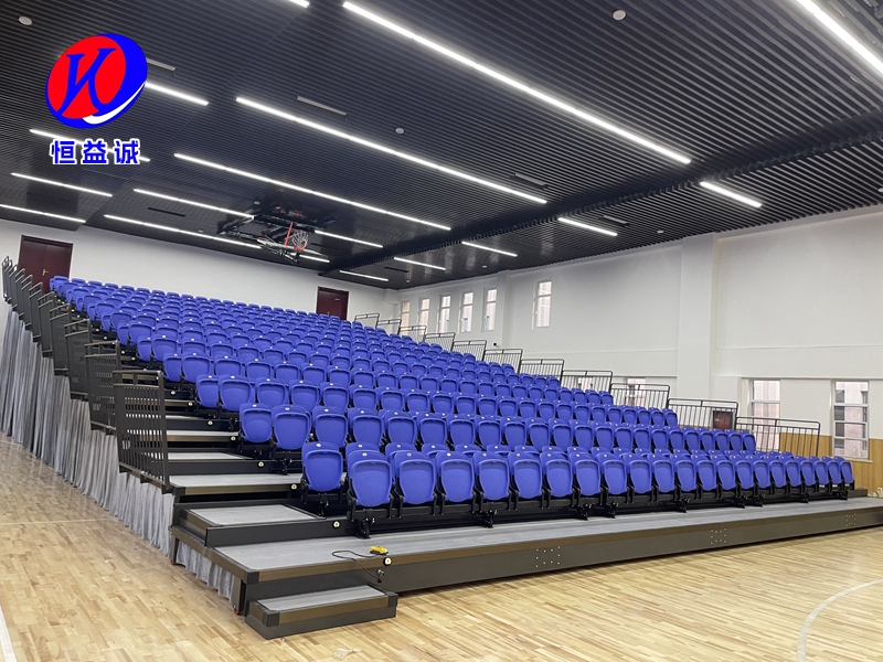伸缩座椅通常采用人体工程学设计,符合人体坐姿曲线,有良好的支撑性和舒适度,能让观众在长时间观赛中保持舒适。同时,合理的看台坡度和排距设计,配合伸缩功能,可确保不同位置的观众都有较好的视线,减少视线遮挡,提升观赛体验。