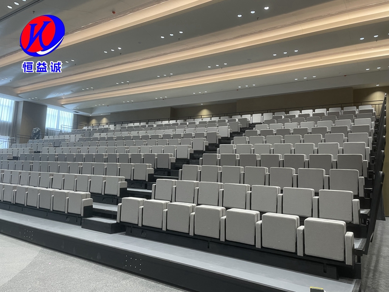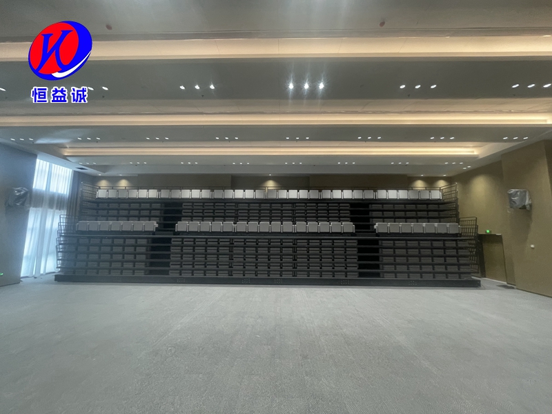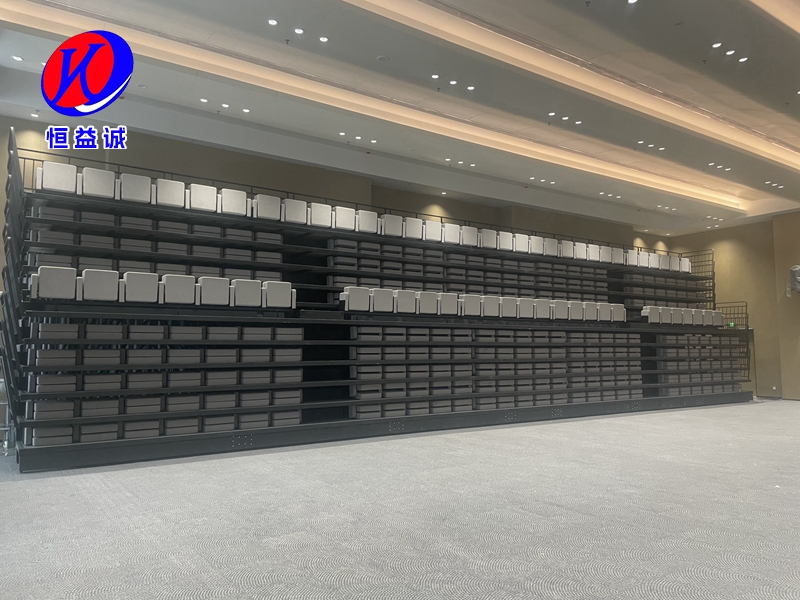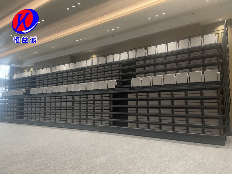 -行走机构:电动伸缩看台行走机构配有机械反馈式同步机构,能有效控制看台在伸缩过程中的定向跑偏现象,行走轮采用双轴承聚氨酯轮,具有能承受重压、不磨损地板、不开裂、滚动顺畅等特点。